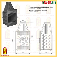 Овальная форма стекла, выдвижной зольный ящик. Вертикальное и боковое открывание, система подъема двери при помощи контргруза. Латунная рамка.