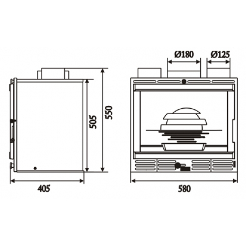 - Выход тепла: два отверстия для выхода тепла ф125 мм