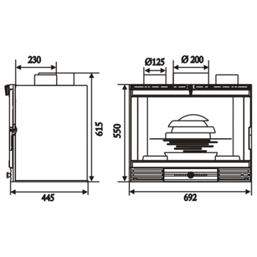 - Выход тепла: два отверстия для выхода тепла ф125 мм