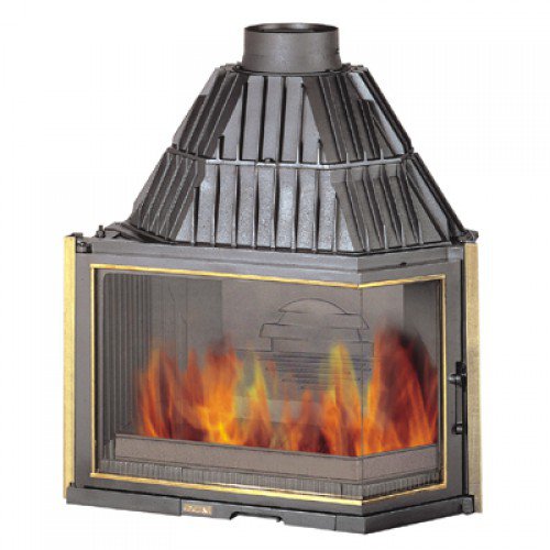 Чугунная топка для камина с увеличенным обзором огня. Регулировка закрытия дверцы, увеличенный дымосборник, боковое открывание дверцы.