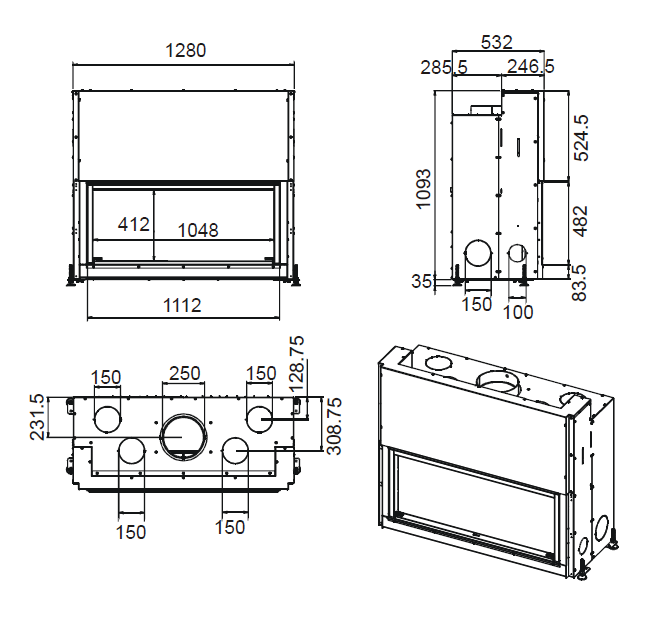 •  Отсутствие нижней рамки стекла, увеличивает обзор огня.