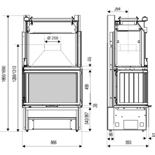 • Диаметр дымохода 250 мм