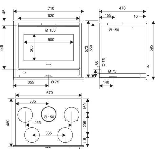 Каминная топка Richard Le Droff 700 FV T, с турбиной
