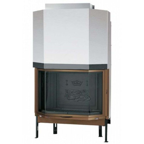 Каминная топка с дверцей призматической формы. Корпус выполнен из толстостенной стали, очаг из толстого чугуна. В качестве горючего используются дрова. Дверь открывается и вверх. Система очистки стекла.