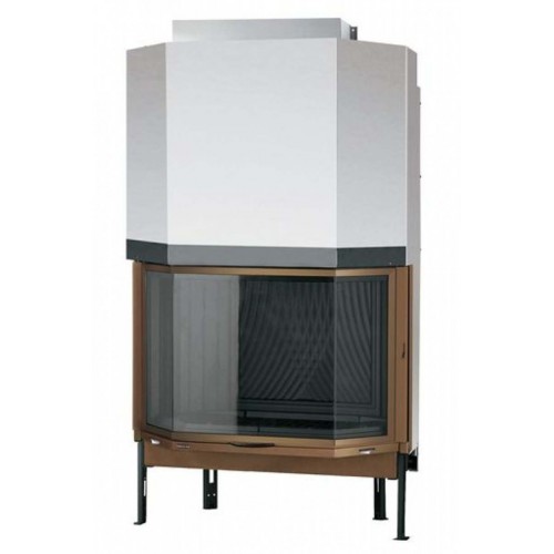 Каминная топка призматической формы. Корпус выполнен из толстостенной стали, очаг из толстого чугуна. Дверь открывается и вверх. Система очистки стекла. Увеличенный дымосборник, сохраняющий тепло.