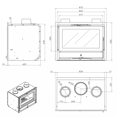 Каминные топки Rocal выполнены из нержавеющей стали и чугуна. При дизайнерских плюсах, данные топки обладают высокими отопительными свойствами, выдавая большой объем тепла при малом количестве дров.