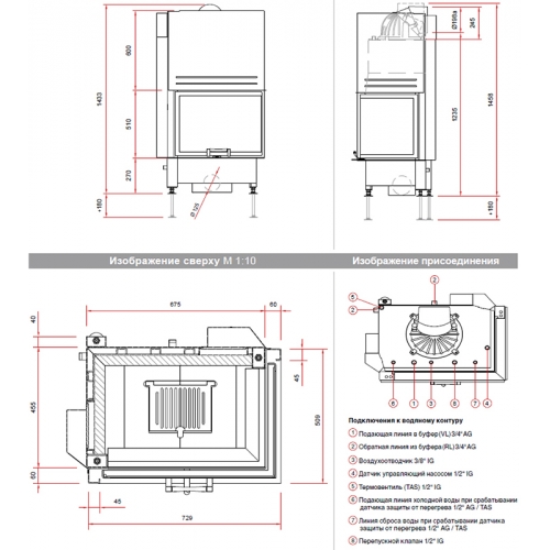 Ширина дверцы составляет 670 мм, глубина 450 мм. Имеется отверстие для воздухосборника диаметром 200 мм. Тепло распределяется за счёт конвекции (50%), а также водяного отопления (50%). Номинальная мощность составляет около 15 кВт, так что топка Scmid (Шмид) Ekko W R 67(45)51 h способна выступить в качестве основной системы отопления дома. Такой камин станет мечтой всей семьи, а гостей заставит любоваться непревзойдённым видом.