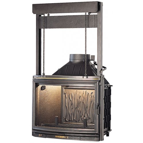 - Сама топка без подъема дверки вверх 71 смРегулируемая шиберная заслонкаУмное устройство для открытия "шибера"Зольный ящик (внутри топки)Задняя стенка "языки пламени"Регулировка подачи воздухаРассекатель пламени
