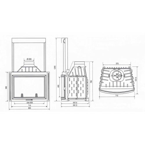 Фасад 710 ммДрова 55 смНоминальная мощность 16 КВтВес 150 кгКПД 76,5%Произведено во Франции - Ширина очага: 71-80 см
