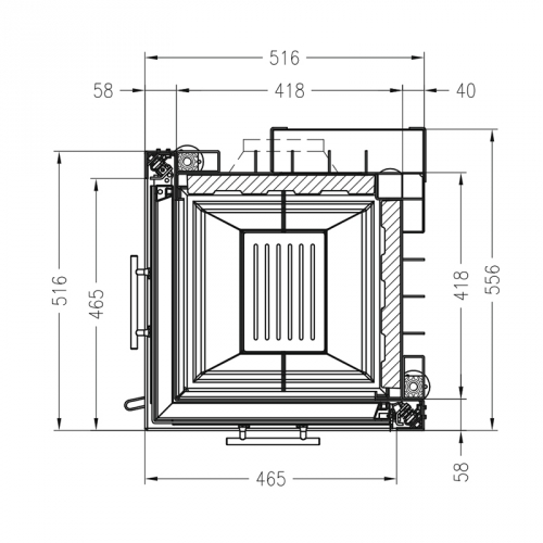 - Опциональная комплектация дополнительной задней дверцей для закладки дров из подсобного помещения.