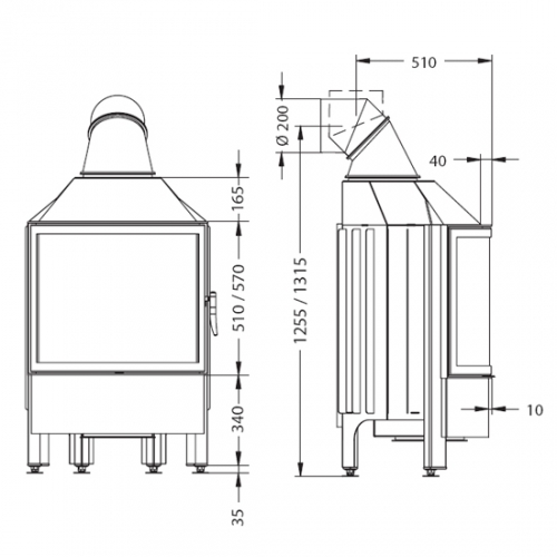 • Опциональная комплектация дополнительной задней дверцей для закладки дров из подсобного помещения.