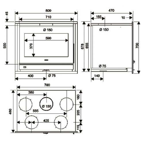 - Обогреваемая площадь: 55 м2 (слабая изоляция), 150 м2 (усиленная изоляция)