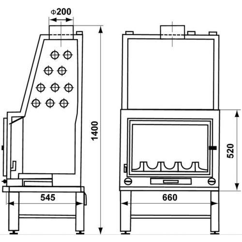 - Большая дверка придает очень красивый вид топки вместе с облицовкой и имеет прямоугольное стекло в передней дверке.