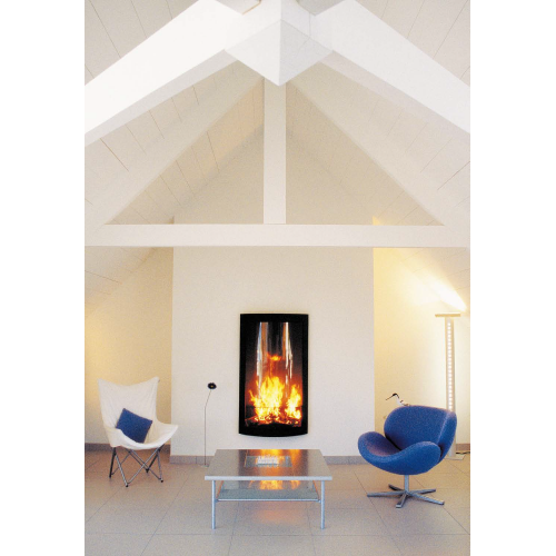 Две эти модели имеют общую концепцию. Камин выполнен из стали марки Indaten. Большая выпуклая пирокерамическая стеклянная дверца на петлях позволяет видеть огонь полностью. Этот камин, будучи самоподдерживающейся конструкцией, может быть вмонтирован в плоскую стену или установлен в углу помещения. Отверстие внизу под стеклом 250 мм обеспечивает циркуляцию воздуха в самой раме, предотвращая загрязнение стекол. Рама обеспечивает изоляцию от окружающих поверхностей. Вес модели 1200: 145 кг- вес модели 1450: 185 кг. Матовая черная краска высокой термостойкости. Верхние и нижние вентиляторы обязательны. Гарантирована эффективность при минимальной длине трубы (внутренней и внешней) в 4 м. Эти модели существуют в версии с двойным фасадом, и в версии «открытой, на газе».