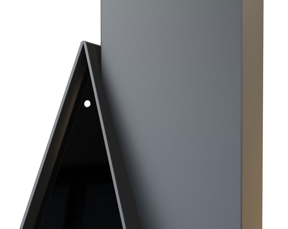 Разрабатывая эту модель, талантливые конструкторы и дизайнеры компании решили отойти от привычных наскучивших форм и разработали оригинальную конфигурацию камина в виде треугольника. Четкие пропорции, сбалансированные линии прекрасно сочетаются с черным стильным цветом боковых частей облицовки и красивым цветовым исполнением фронтальной части.
