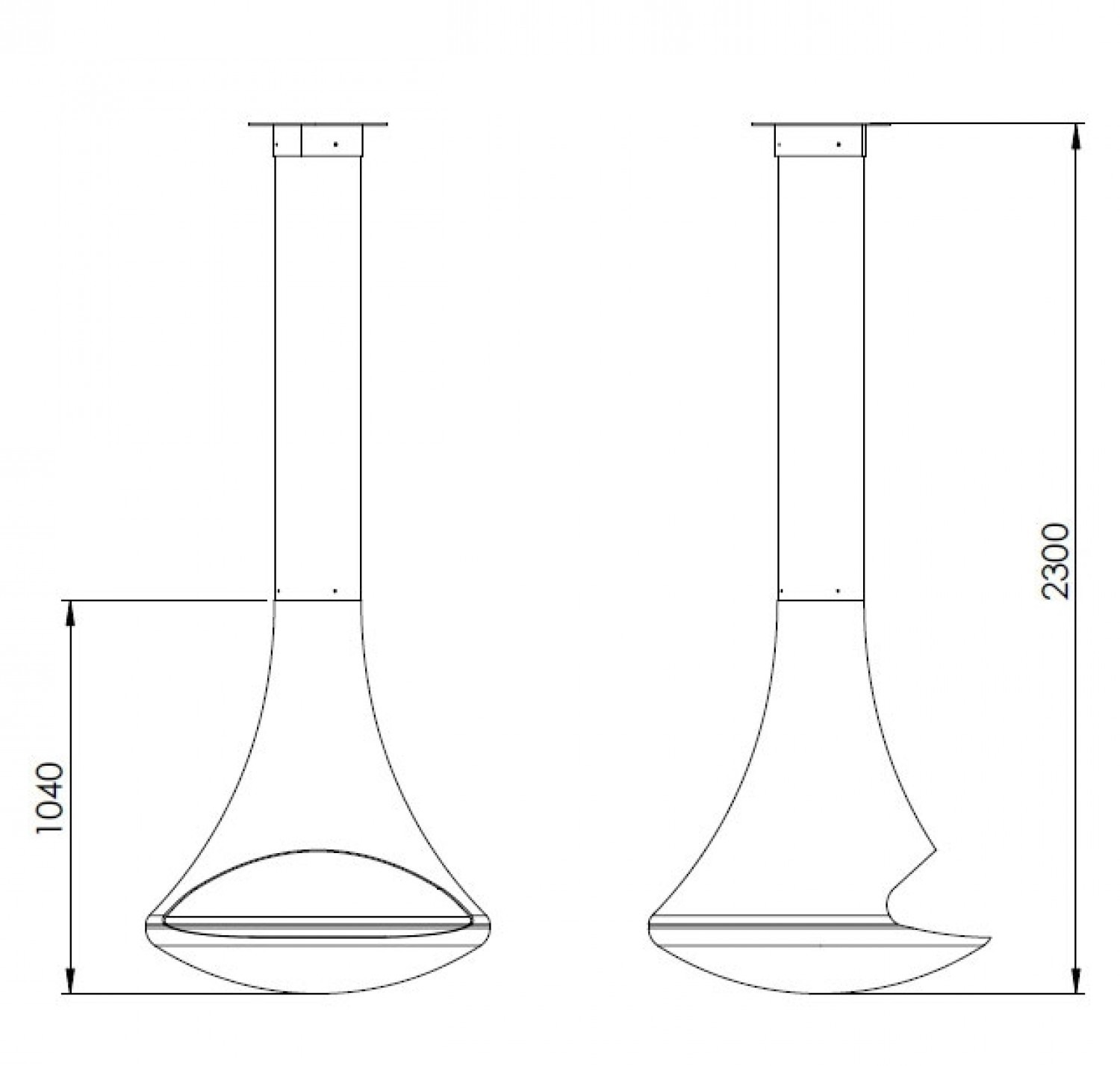 Центральный подвесной двусторонний камин без системы вращения. Цвет - серый.
