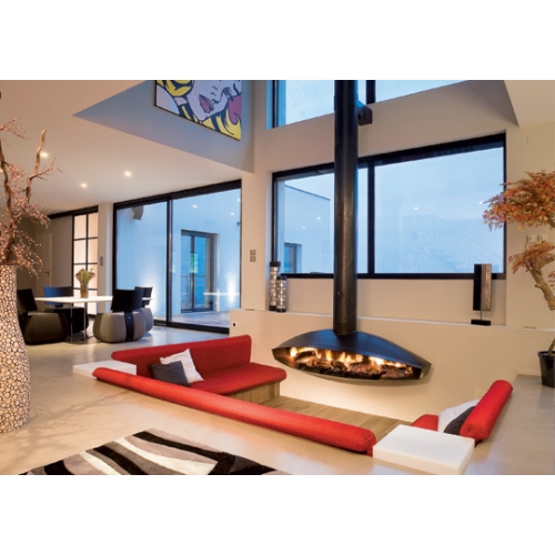 - Свободно стоящий камин прерывистого горения, с открытой топкой