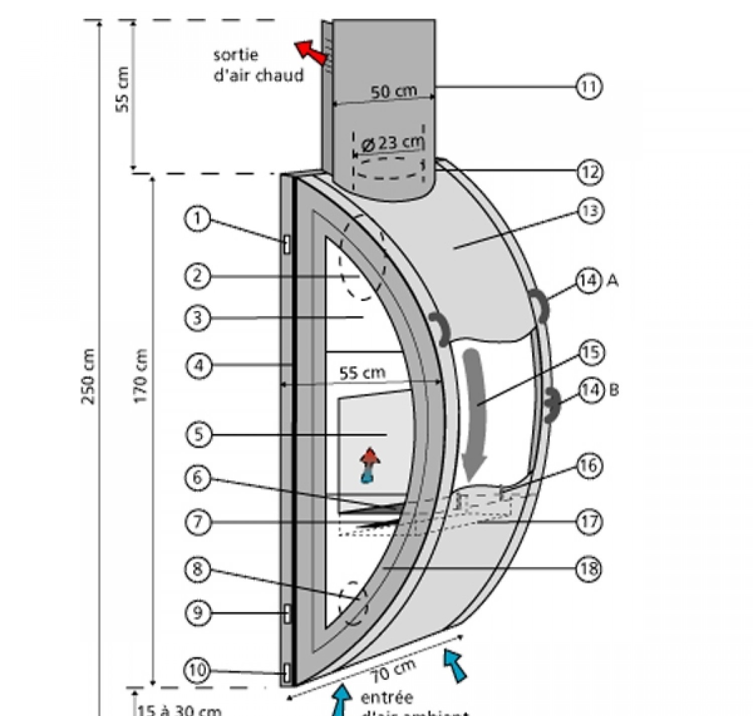 Камин пристенный, подвесной, с верхним подключением дымохода + кожух вокруг трубы + карниз.