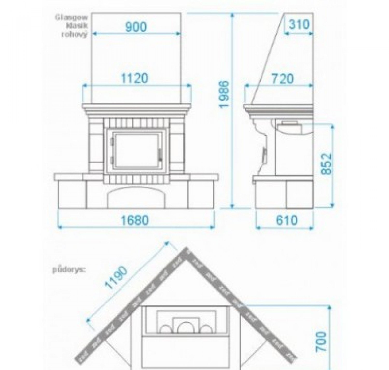 Камин ABX Glasgow Klasik (угловой) с облицовкой из песчаника оборудован закрытой топкой. Желающие посидеть «у костра», могут эксплуатировать камин с открытой топкой — открыв дверцу.