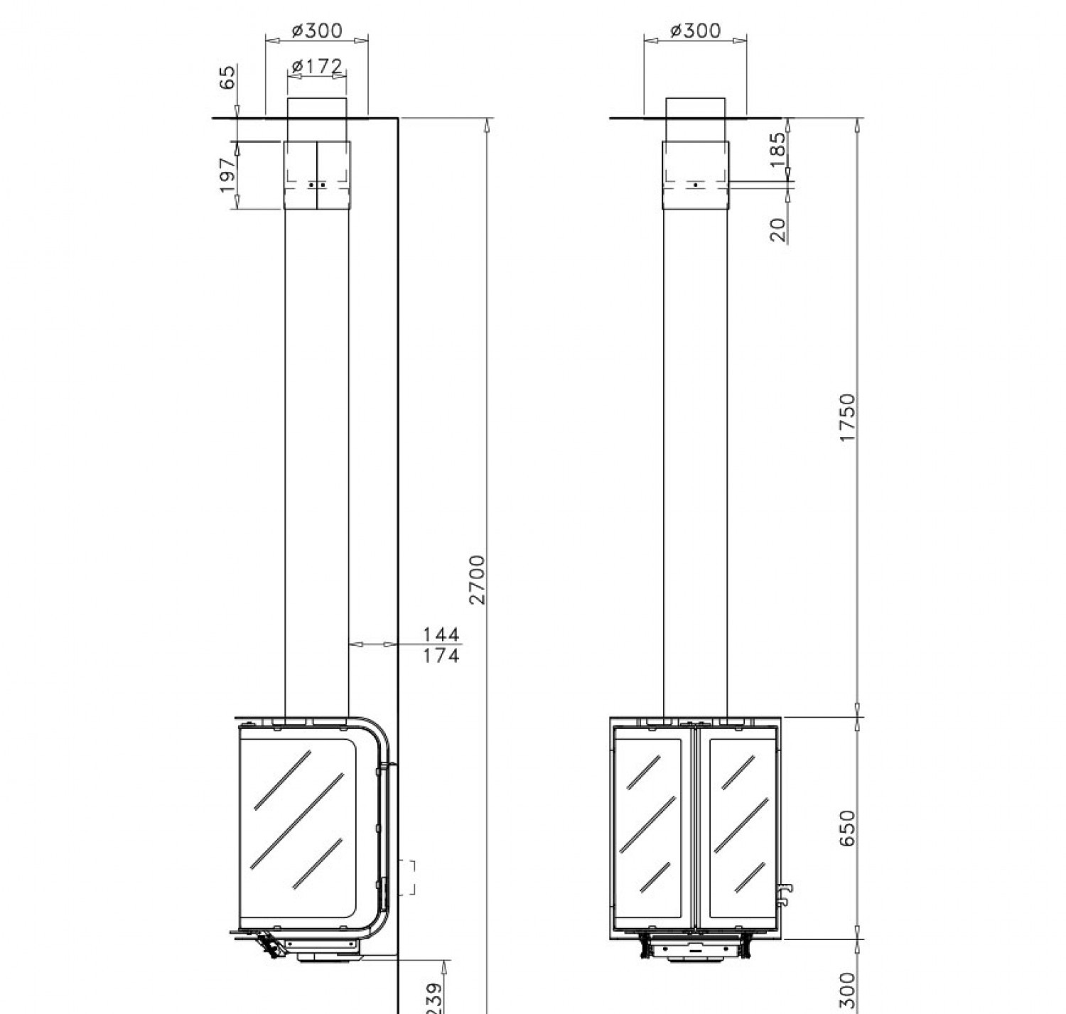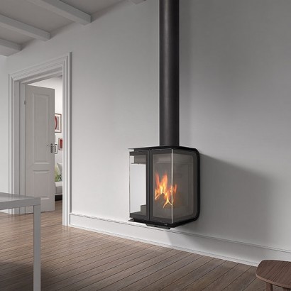 Фронтальный (пристенный) металлический камин. Дрова: 30 см.