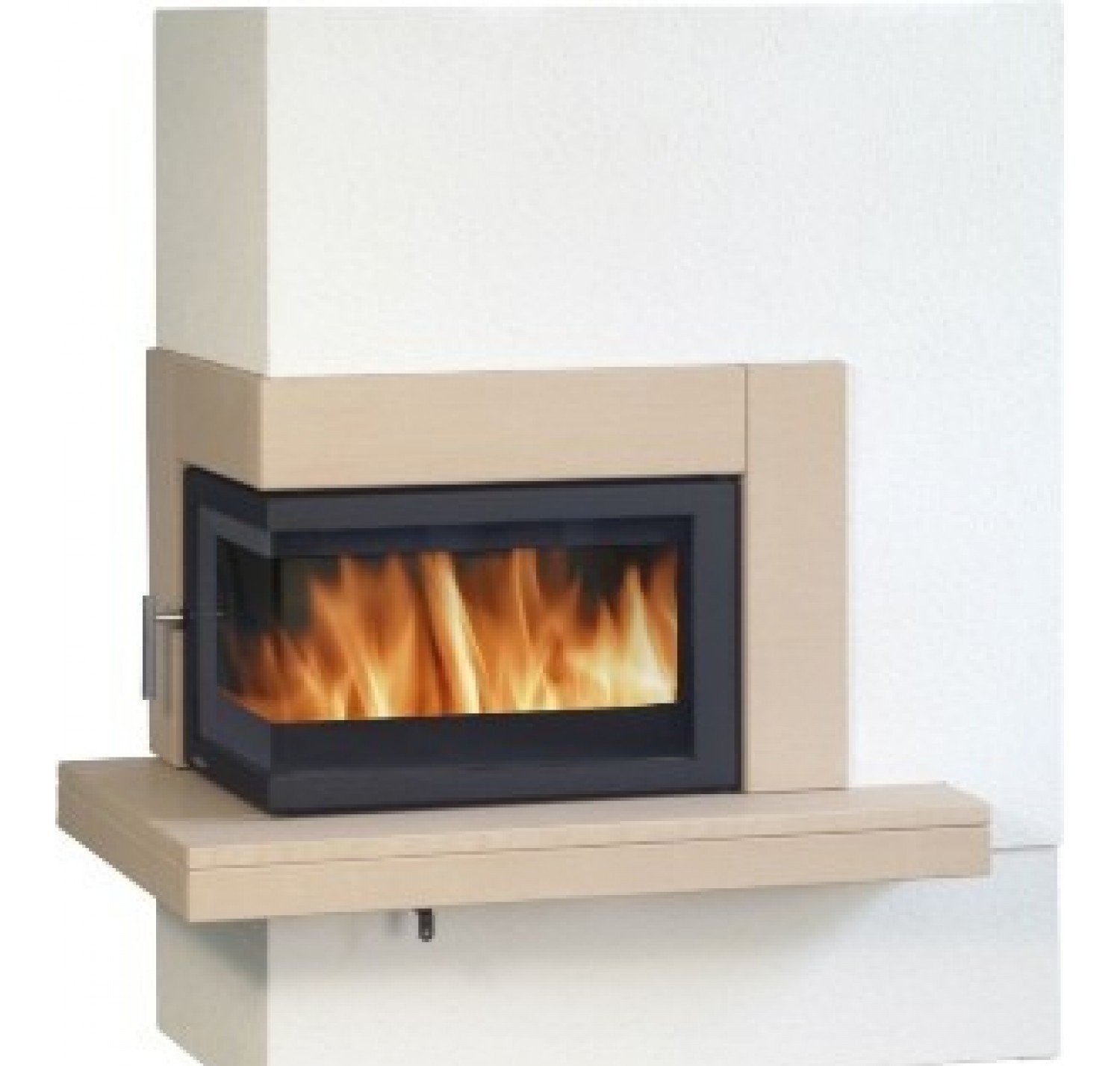 Камин ABX Pateo — современный камин, работающий на дровах или древесных брикетах. Расход топлива при номинальной нагрузке в 8 кВт составляет 2, 5 кГ в час. Корпус Pateo оштукатурен, а каминные вставки могут быть из песчаника или черного мрамора. Топочная камера футерована вермикулитом.