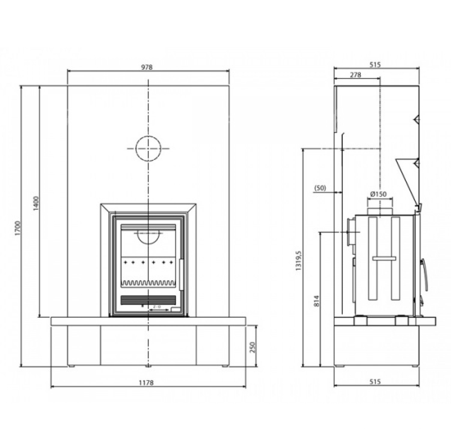 Камин Puris гранит /нержавеющая сталь
