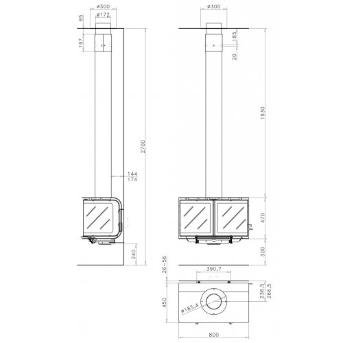 • Диаметр дымохода: 18,5 см