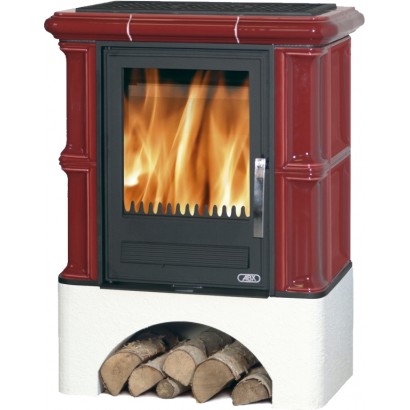 Кафельная печь Bavaria K - вставка комбо, прямой цоколь бордо, с теплообменником (4,2 кВт в воду)