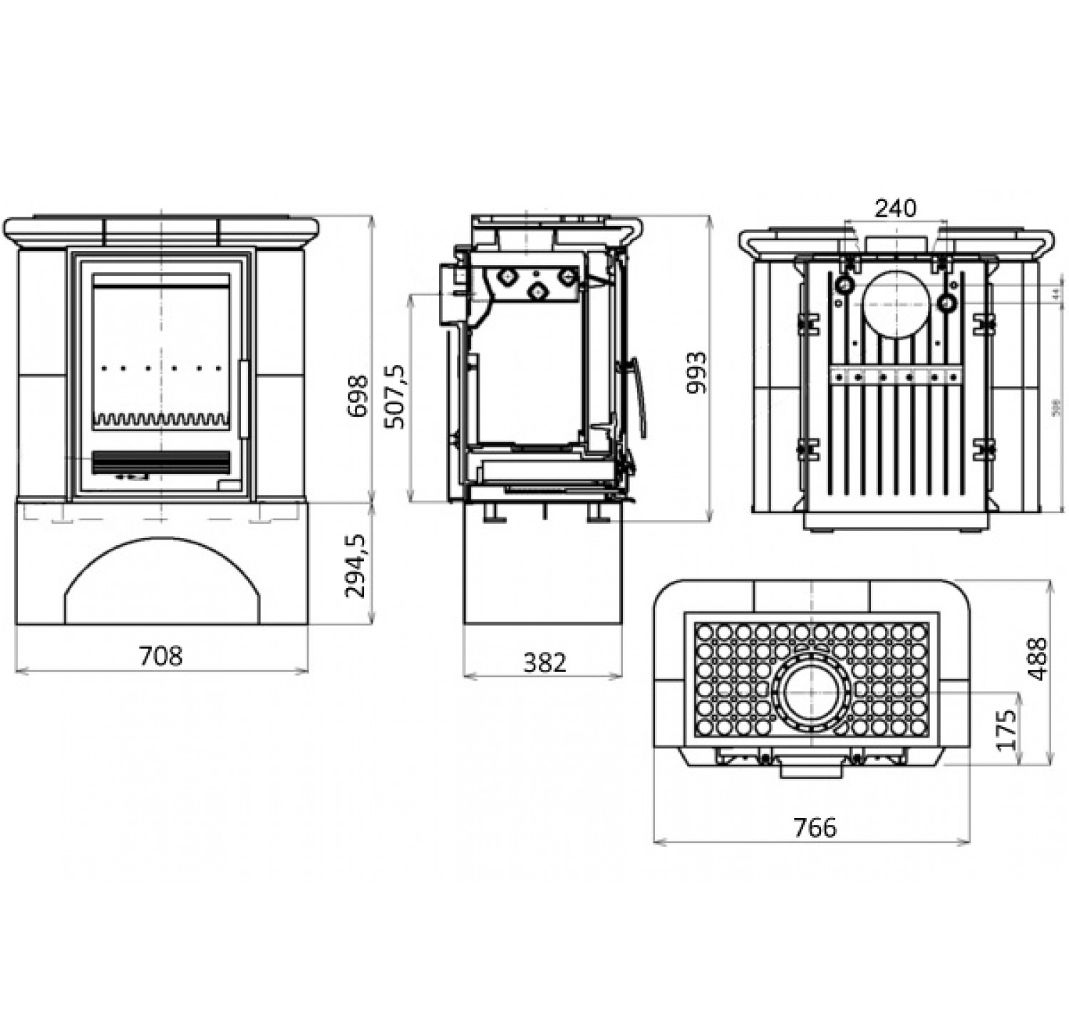 Необходимо дополнительно укомплектовать эту печь цоколем — чугунным, прямым или сельским.