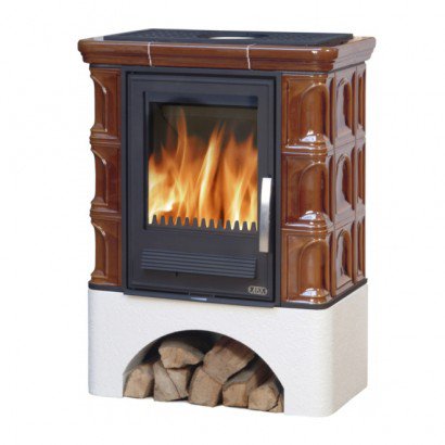 Кафельная печь Iberia L - вставка чугунная белый цоколь коричневая
