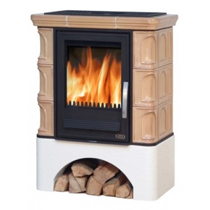 Кафельная печь Iberia L - вставка чугунная белый цоколь табак