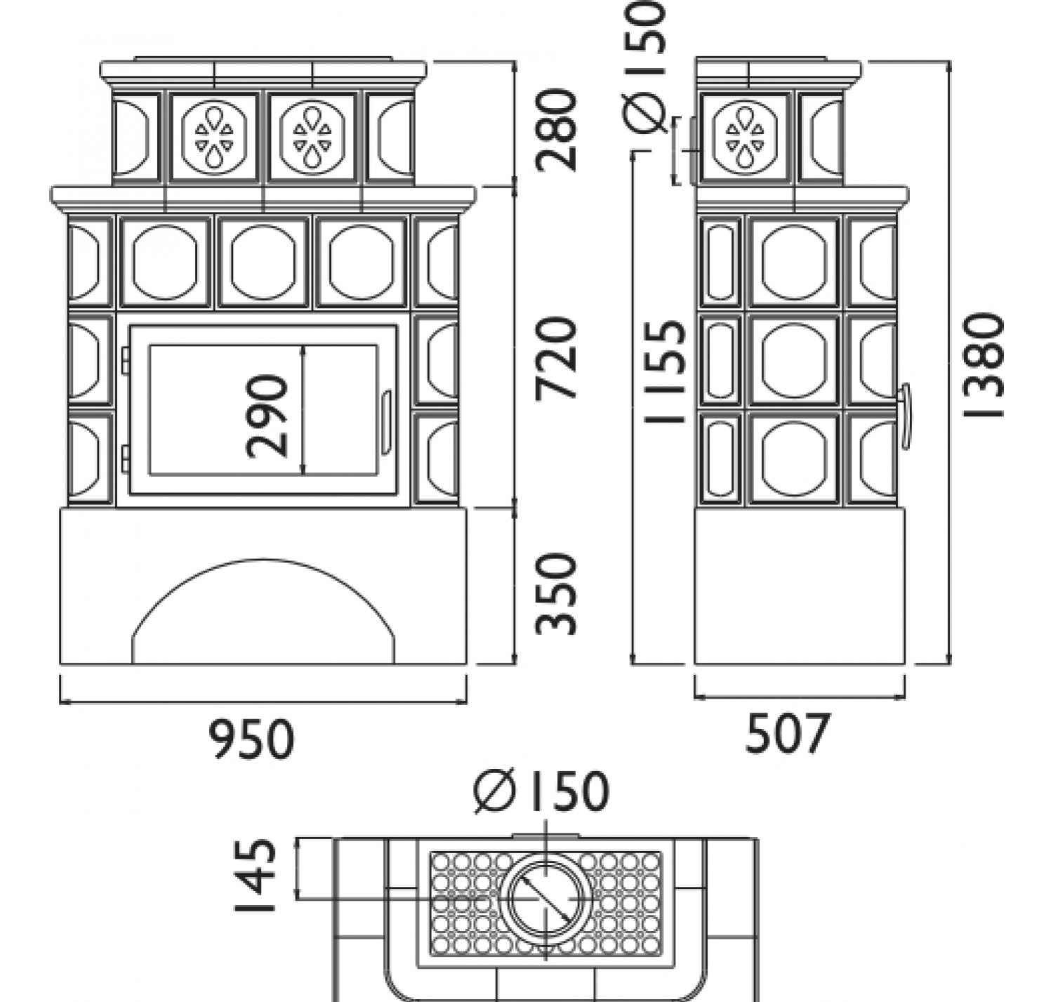 У печи Karelie белый цоколь с вместительной нишей для дров.
