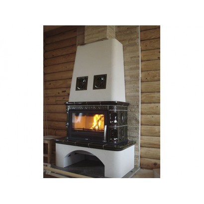 Кафельная печь- камин Laponie соединил в себе два стиля оригинальность и кантри, кафельная облицовка придает