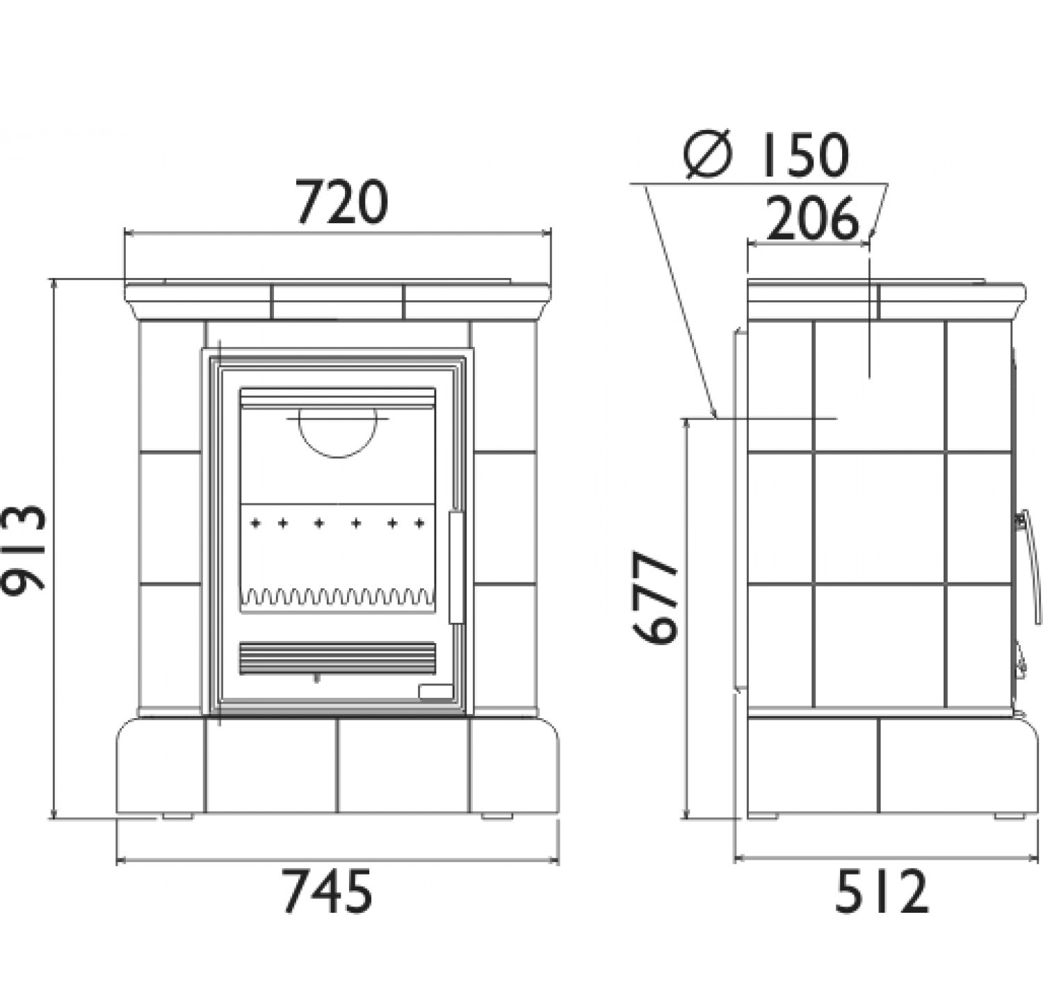 Кафельная печь ABX Marina ориентирована на обогрев помещения и украшение интерьера. Камин Marina весит 245 кг, поэтому его можно монтировать без отдельного фундамента. При сравнительно небольших габаритах Marina обладает системой длительного горения и способна обогреть большие пространства при сжигании небольшого количества топлива. За час печь в номинальном режиме расходует 1,9 кг сухих дров. Облицовка выполнена из печного кафеля, который отдает тепло еще несколько часов, после того как печь протопилась. Топка печи Marina бывает чугунная или комбинированная (сталь+чугун). Выход дымохода в двух вариантах.