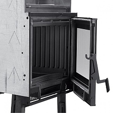 Модель из стали черного или белого цвета. Под топку Palatium 3. Удобная черная дровница, встроенная в боковой части камина.
