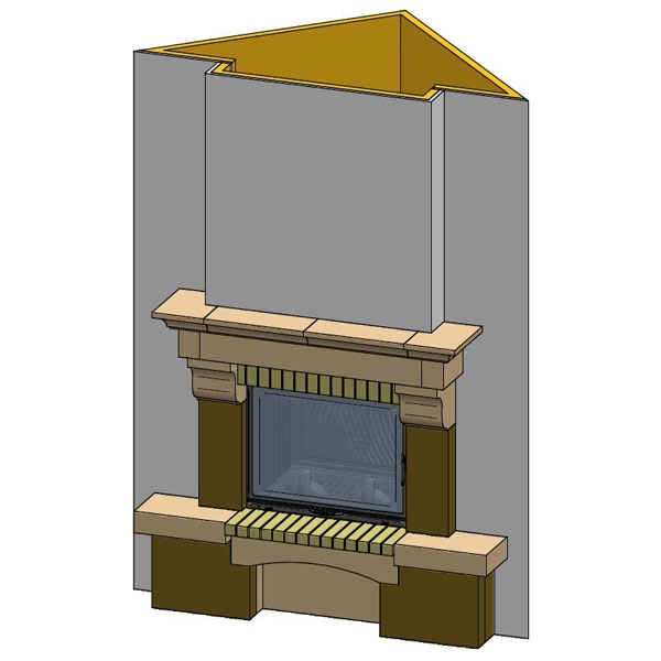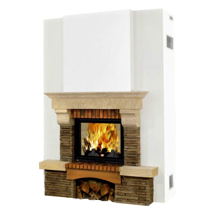Полувстроенная облицовка из камня Limousin rock + Cevennes bricks.