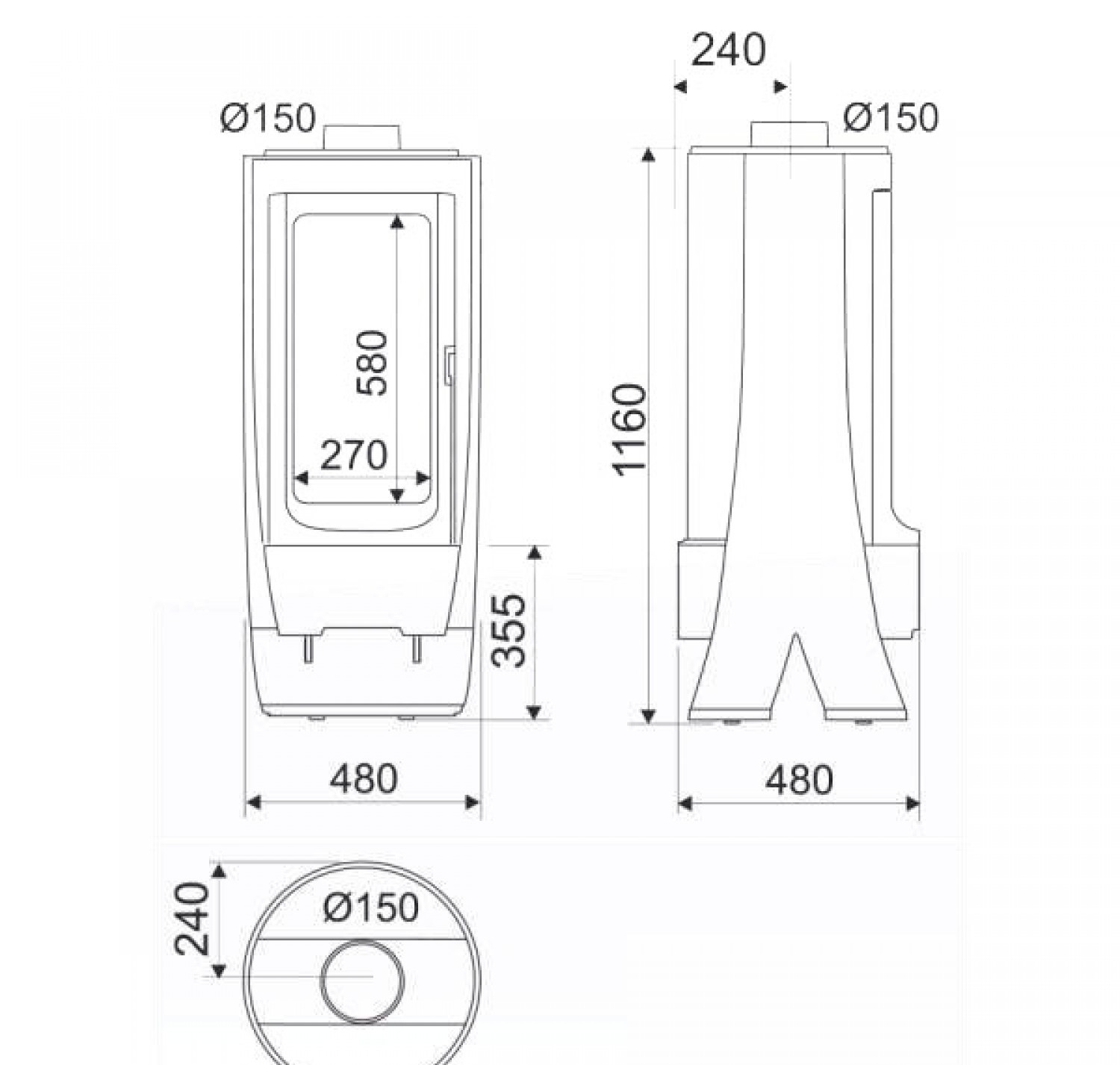 - Диаметр дымохода, (мм) 150 мм.