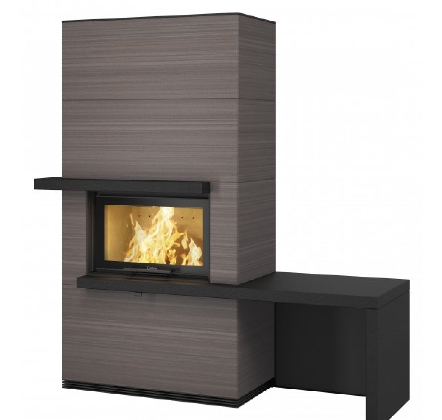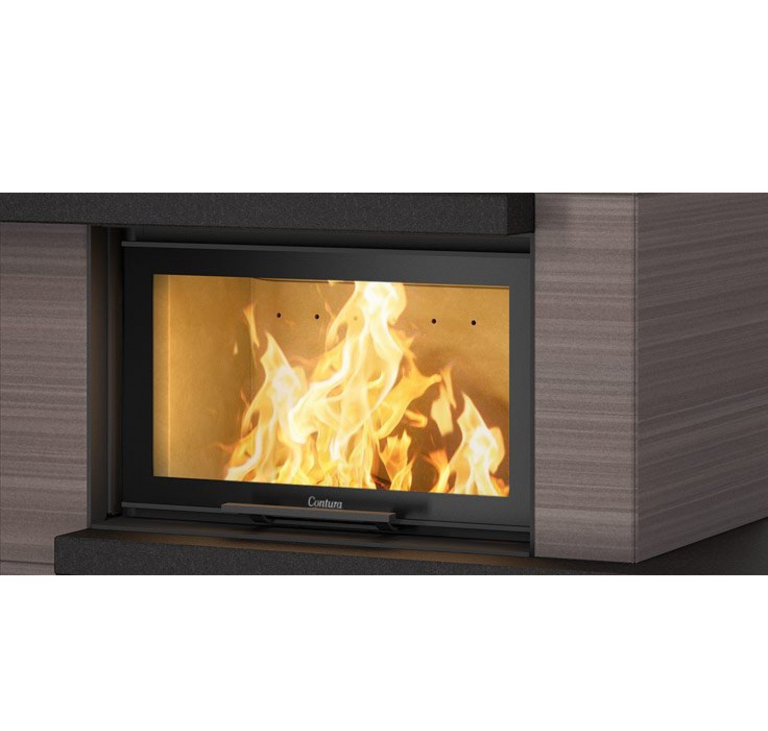 Камин Contura i31 S оснащен прямой дверцей, которая при открытии поднимается вверх. Отделка камина из натурального камня - песчаника. Песчаник приятного орехового цвета, с красивым жилкованием. Камин можно дополнить скамьей с местом для хранения дров или декоративными деталями из черного гранита. Большая стеклянная дверца создает ощущение открытого огня. Благодаря системе "чистое горение" дверца всегда остается чистой, и вы можете любоваться огнем не думая о загрязнении камина или дымохода копотью и сажей.