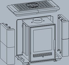 Это каналы, расположенные вертикально. Они сделаны в корпусе очага. У них выходные отверстия внизу и вверху. Через нижний – холодная воздушная масса поступает в канал. Тут нагретые кирпичи прогревают его. Затем воздух поднимается вверх и выходит через отверстие вверху. Таким образом, КПД дровяного камина увеличивается.