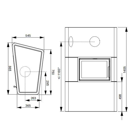 Топка изготовлена из огнеупорной стали и имеет стеклокерамическое окно с прямым стеклом. Открытие дверцы - вбок.