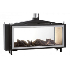 Угловая печь-камин с задним вариантом подключения и раздвижными дверцами.
