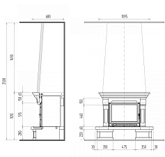 - Защитная плита для пола и дополнительные секции для дымохода - опционально
