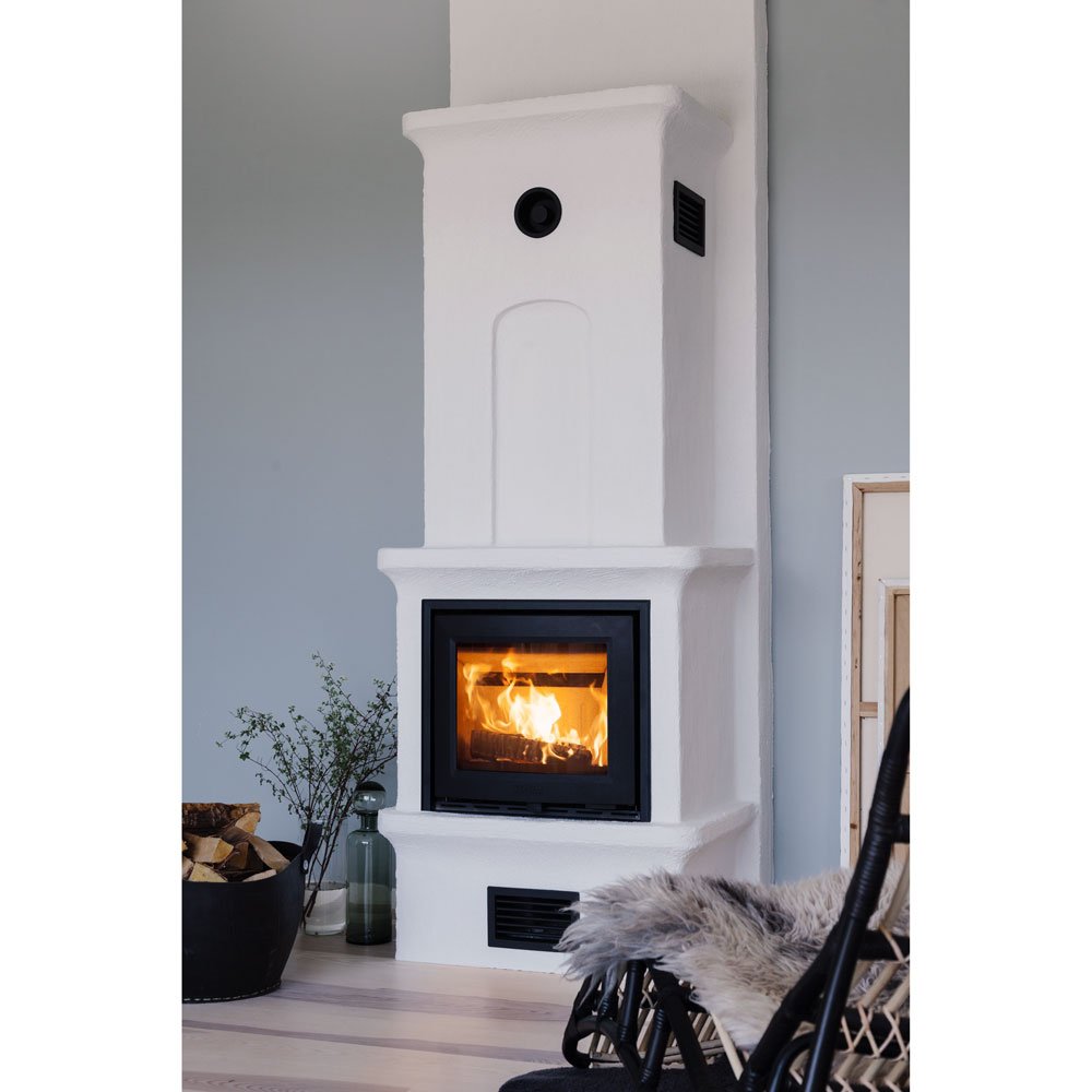 Очень стильная и уютная печь К10 от знаменитого шведского производителя Keddy, стилизованная под компактный домашний камин. Белоснежная облицовка изделия своей конструкцией напоминает старинную печь прошлых веков, которая в сочетании с черной рамкой и плоским стеклом топки создает потрясающее впечатление. Плавные минималистичные линии облицовки и компактность самой конструкции смотрятся очень выигрышно и аккуратно. Красивая стилизация данной модели скрывает под собой ультра современное оснащение «внутренностей» печи. Мощная чугунная топка обеспечивает качественное и чистое сгорание, а заодно более 80% КПД. Номинальная мощность печи исчисляется от 4 до 10 кВт, которых более чем достаточно для загородных коттеджей, домов и дач.