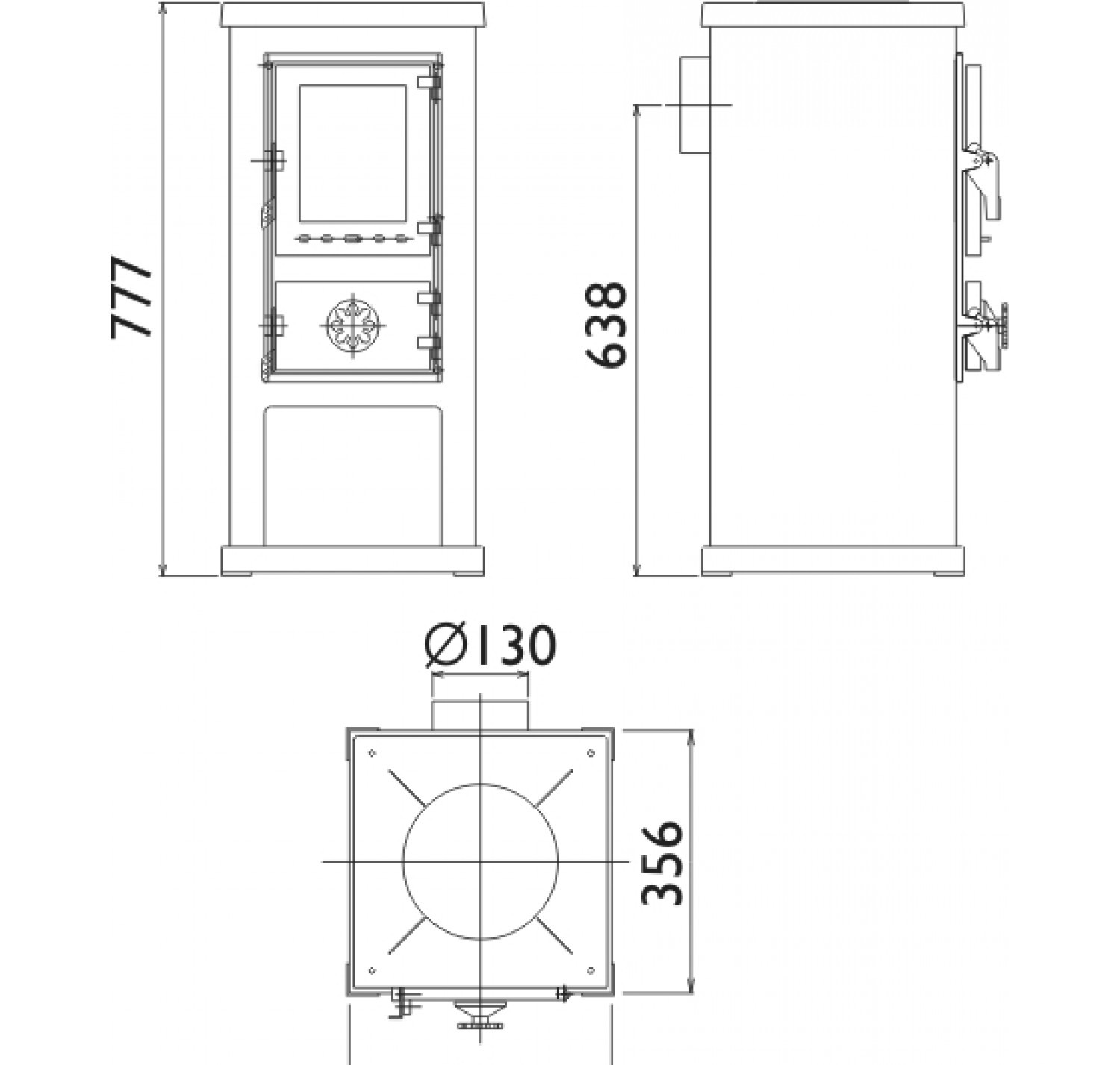 Топка печи Lappi изготовлена из стали, оснащена стеклокерамическим стеклом, выдерживающим температуру нагрева в 700 градусов С. Эта печь оборудована варочной конфоркой, есть экономичный режим (длительное горение). Внизу предусмотрено углубление для хранения дров.