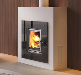 Корпус имеет квадратную форму. Цвет финишной окраски - белый, а декоративная рама выполнена из стекла оранжевого цвета. Топка стальная, футерованная изнутри "Thermotte ™ ". Топочное декоративное обрамление (узкая рамка) выполнено из полированной хромированной стали.