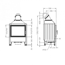 Также в этой печи предусмотрены система двойного дожига, система чистое стекло и функция медленного горения. Под топкой внизу расположена ниша для хранения дров, а над топкой — ниша для разогрева пищи.