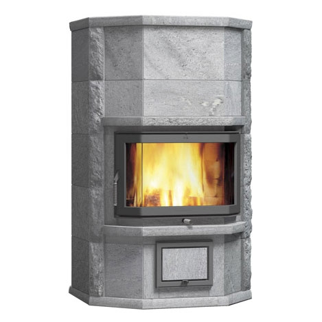 Пристенный печь-камин с задним нижним подключением 2 теплового класса, для больших помещений.