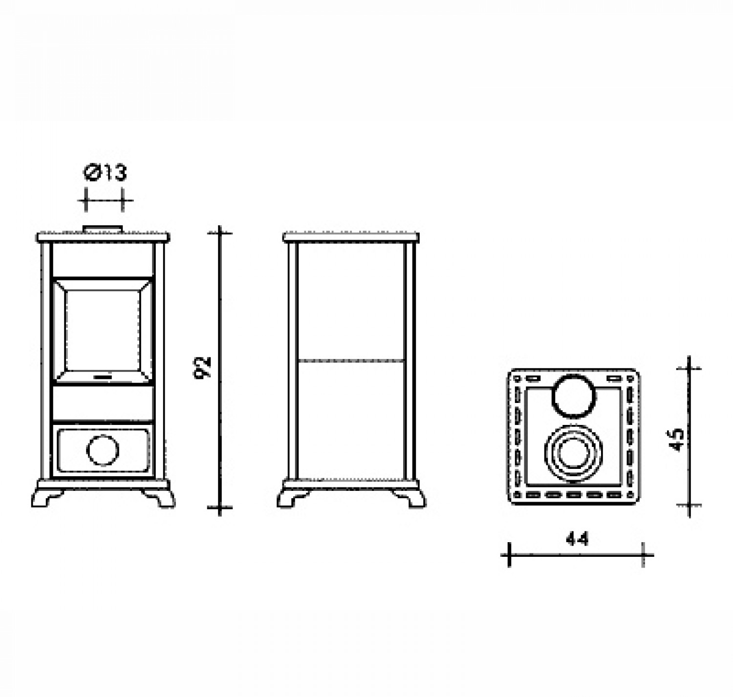 Отопительная печь. Корпус отопительной печи - сталь, внутри - чугун, вставки из керамики, съемные кольца конфорки на варочной поверхности.