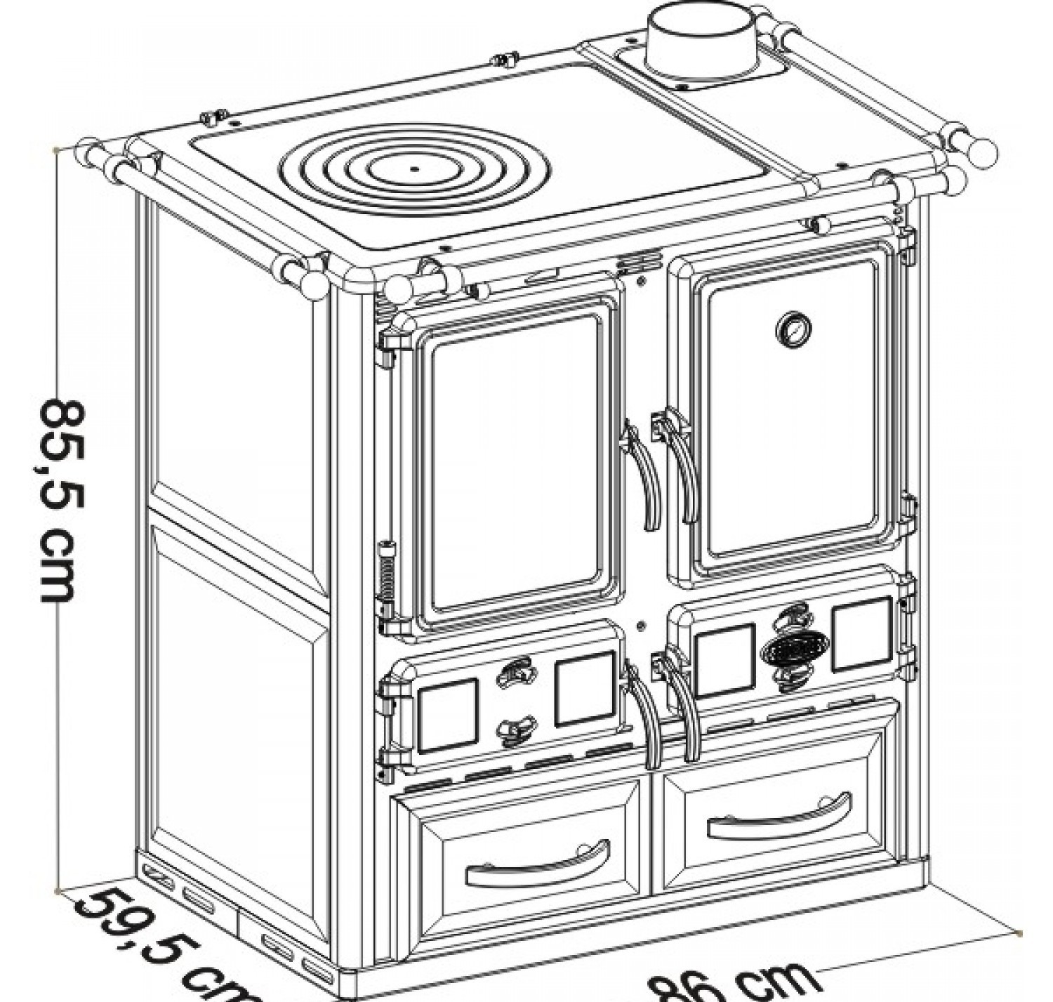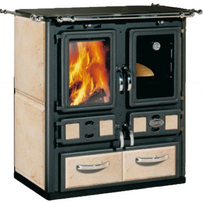 Отопительно-варочная плита с духовкой. Керамика. Дверца и внутренний обклад топки из чугуна.