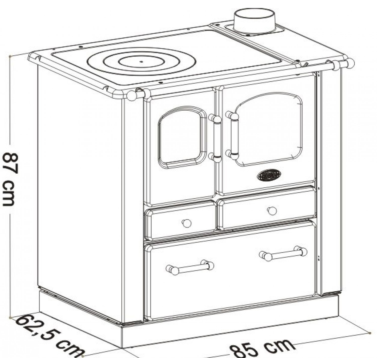 Отопительно-варочная плита с духовкой. Дверца и внутренний обклад топки из чугуна. Левая.